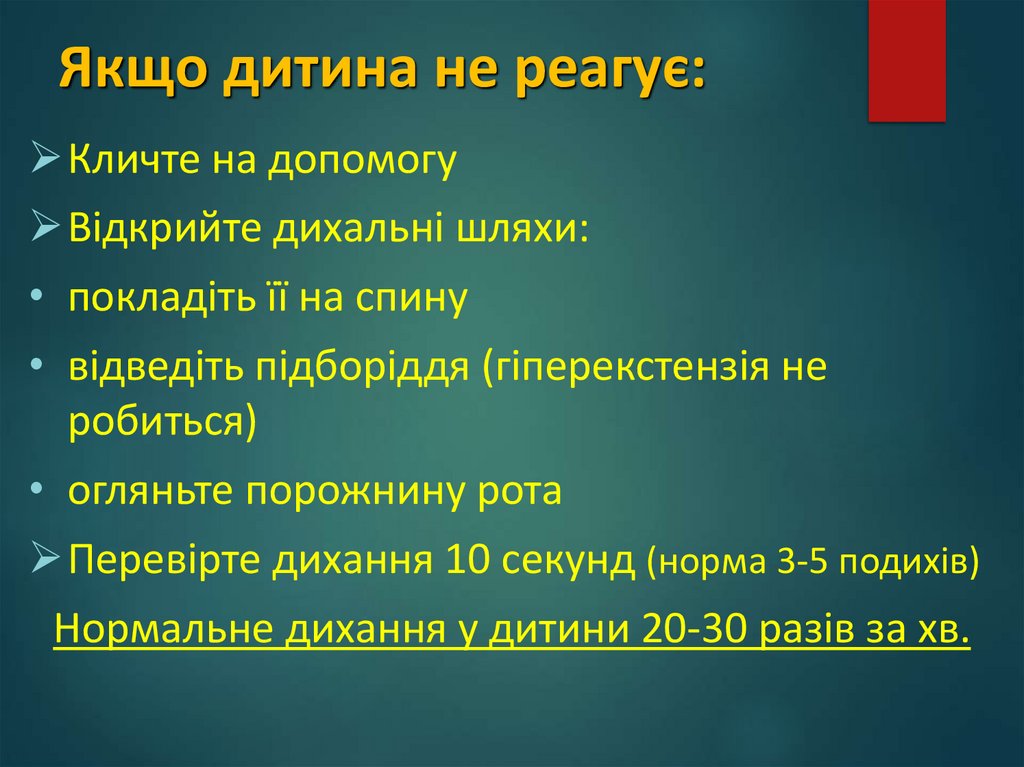 Перевірте дихання 10 секунд (норма 3-5 подихів)