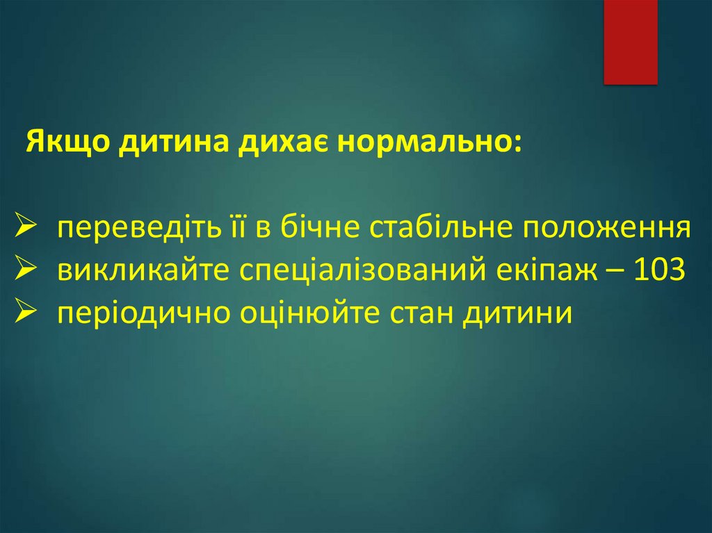 Якщо дитина дихає нормально:переведіть її в бічне стабільне положення