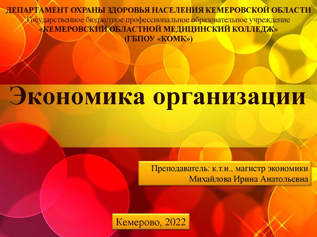 Преподаватель: к.т.н., магистр экономики