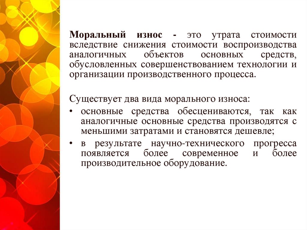 моральный и физический износ.
