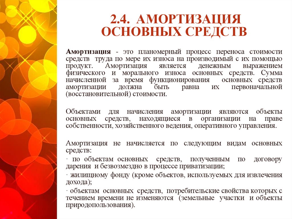 2.4. АМОРТИЗАЦИЯОСНОВНЫХ СРЕДСТВ
