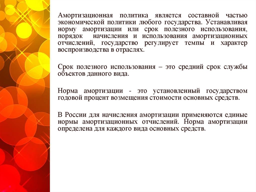Амортизационная политика является составной частьюэкономической политики любого государства. Устанавливая