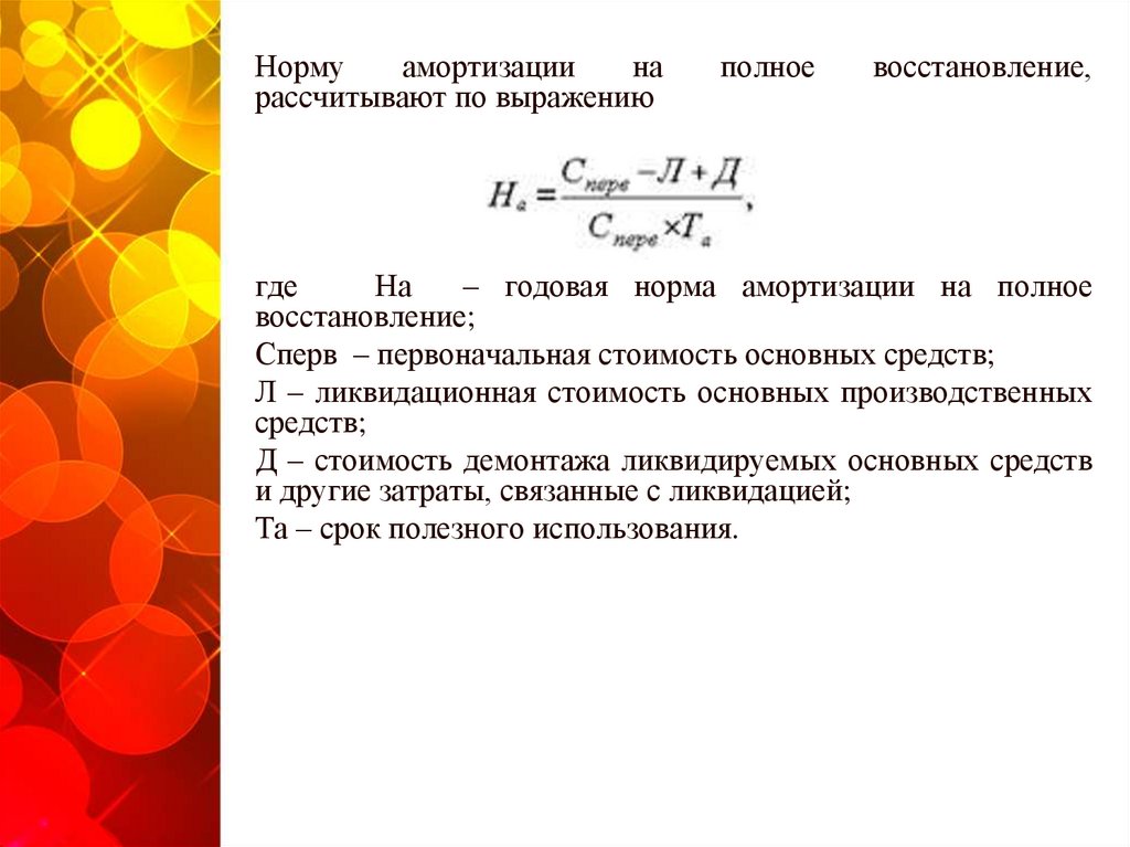 – годовая норма амортизации на полное