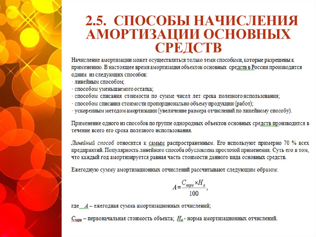 2.5. СПОСОБЫ НАЧИСЛЕНИЯАМОРТИЗАЦИИ ОСНОВНЫХ
