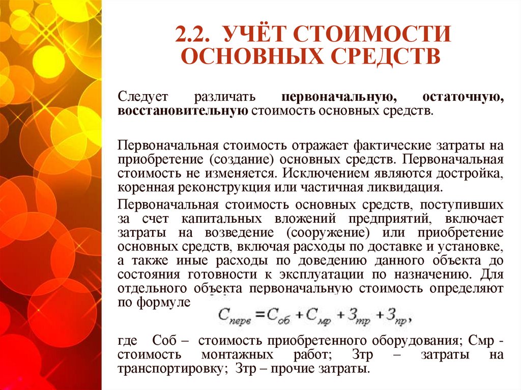2.2. УЧЁТ СТОИМОСТИОСНОВНЫХ СРЕДСТВ