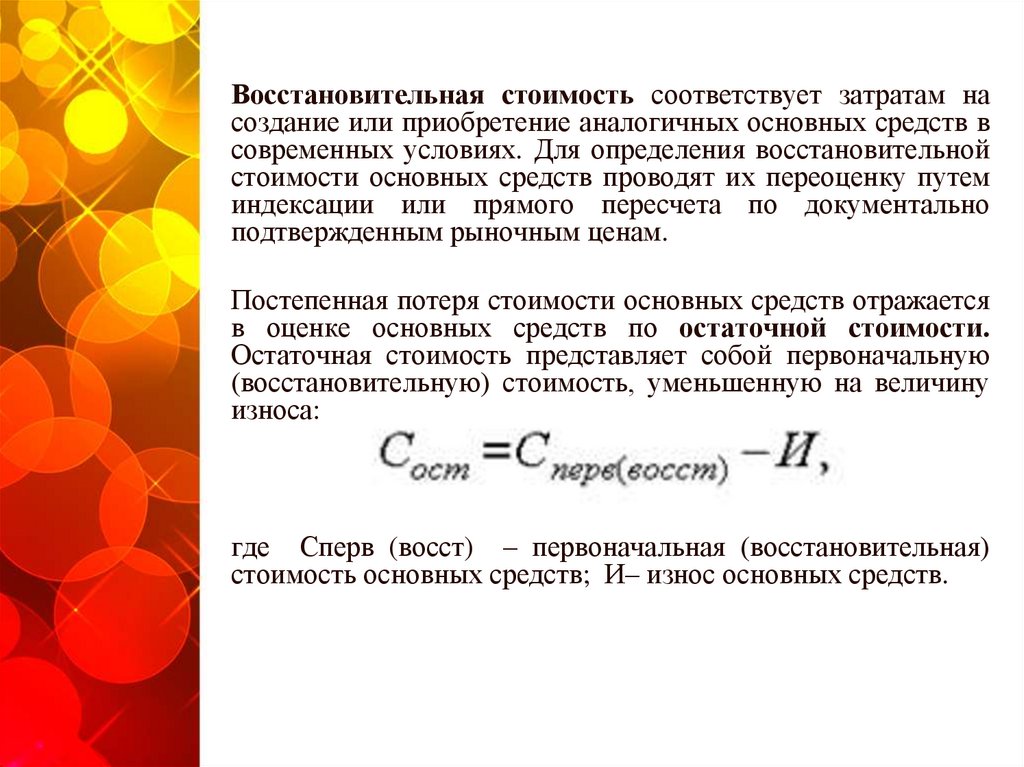 восстановительную стоимость основных средств.