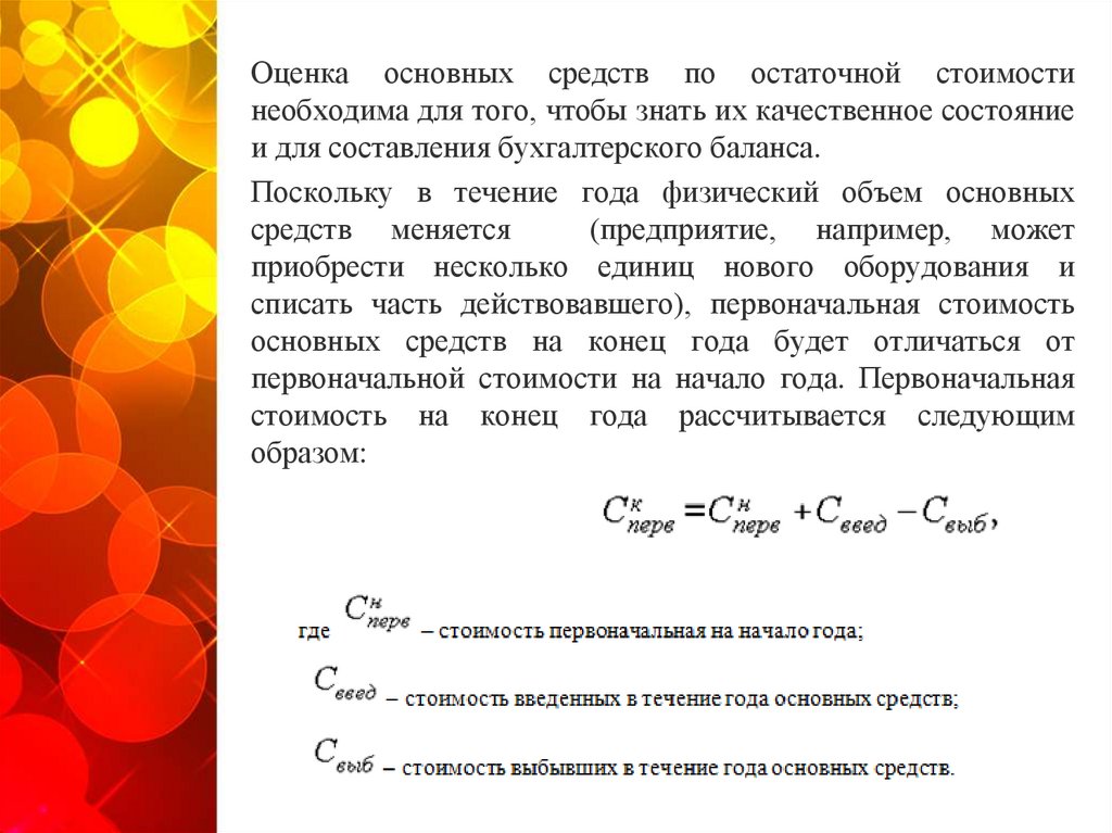 Оценка основных средств по остаточной стоимостинеобходима для того, чтобы знать их качественное состояние