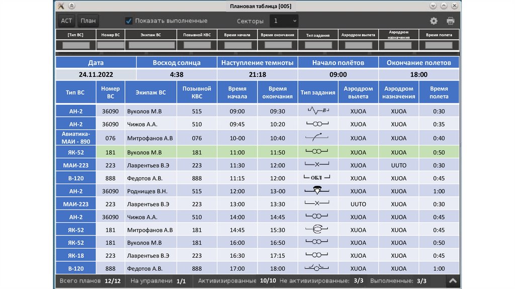 Плановая таблица [005][Тип ВС]