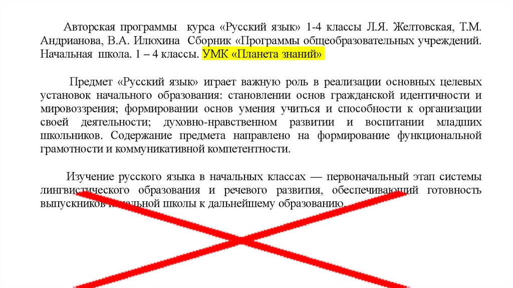 Авторская программы курса «Русский язык» 1-4 классы Л.Я. Желтовская, Т.М. Андрианова, В.А. Илюхина