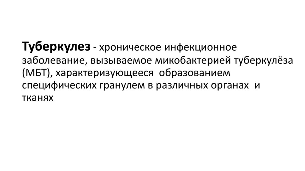 Туберкулез - хроническое инфекционноезаболевание, вызываемое микобактерией туберкулёза