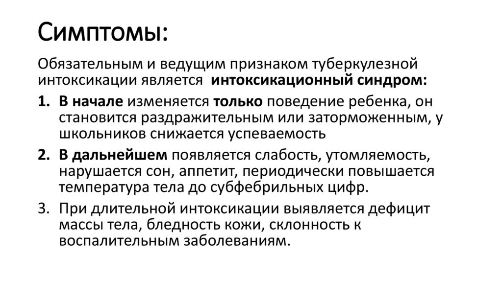 Клиническая картина туберкулезнойинтоксикации