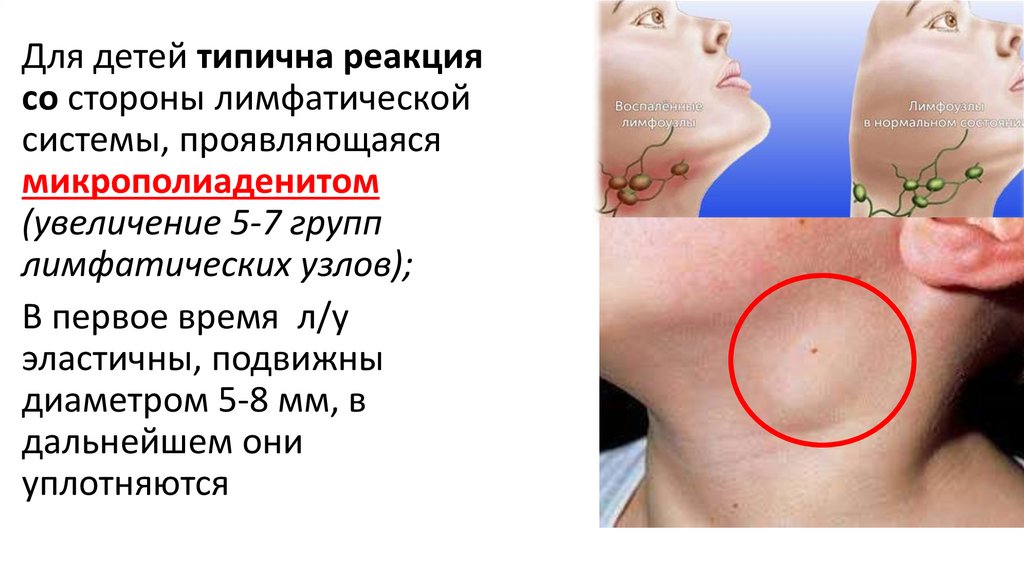 Для детей типична реакциясо стороны лимфатической