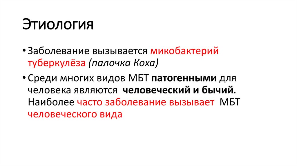 • Среди многих видов МБТ патогенными для