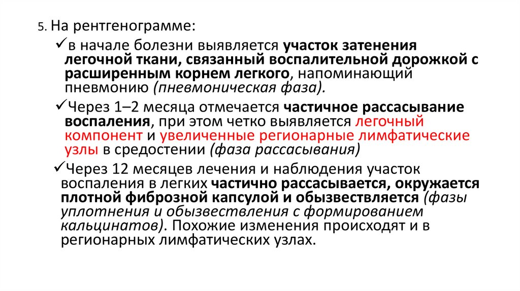 Симптомы:Обязательным и ведущим признаком туберкулезной
