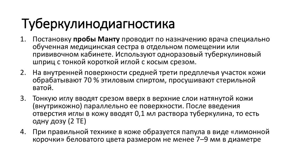 Туберкулинодиагностика1. Постановку пробы Манту проводит по назначению врача специально