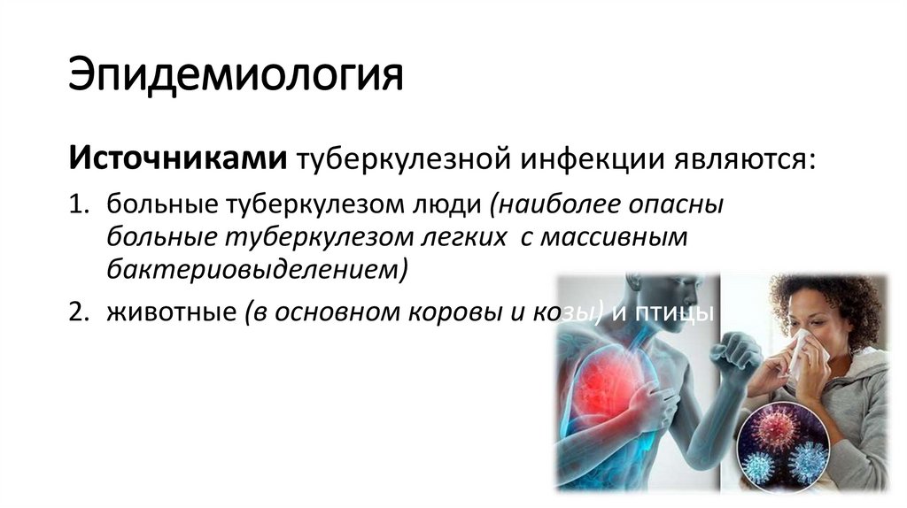 ЭпидемиологияИсточниками туберкулезной инфекции являются: