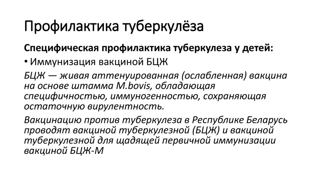 Профилактика туберкулёзаСпецифическая профилактика туберкулеза у детей: