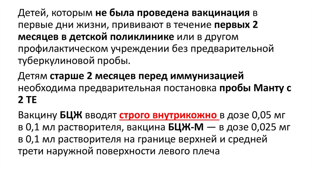 в 0,1 мл растворителя, вакцина БЦЖ-М — в дозе 0,025 мг