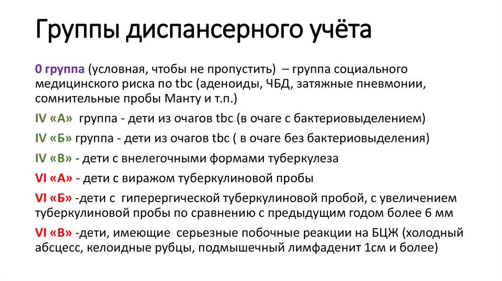 IV «А» группа - дети из очагов tbc (в очаге с бактериовыделением)