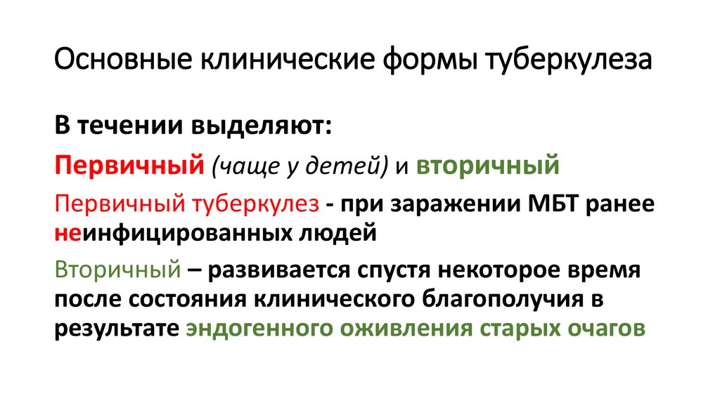 Основные клинические формы туберкулезаВ течении выделяют: