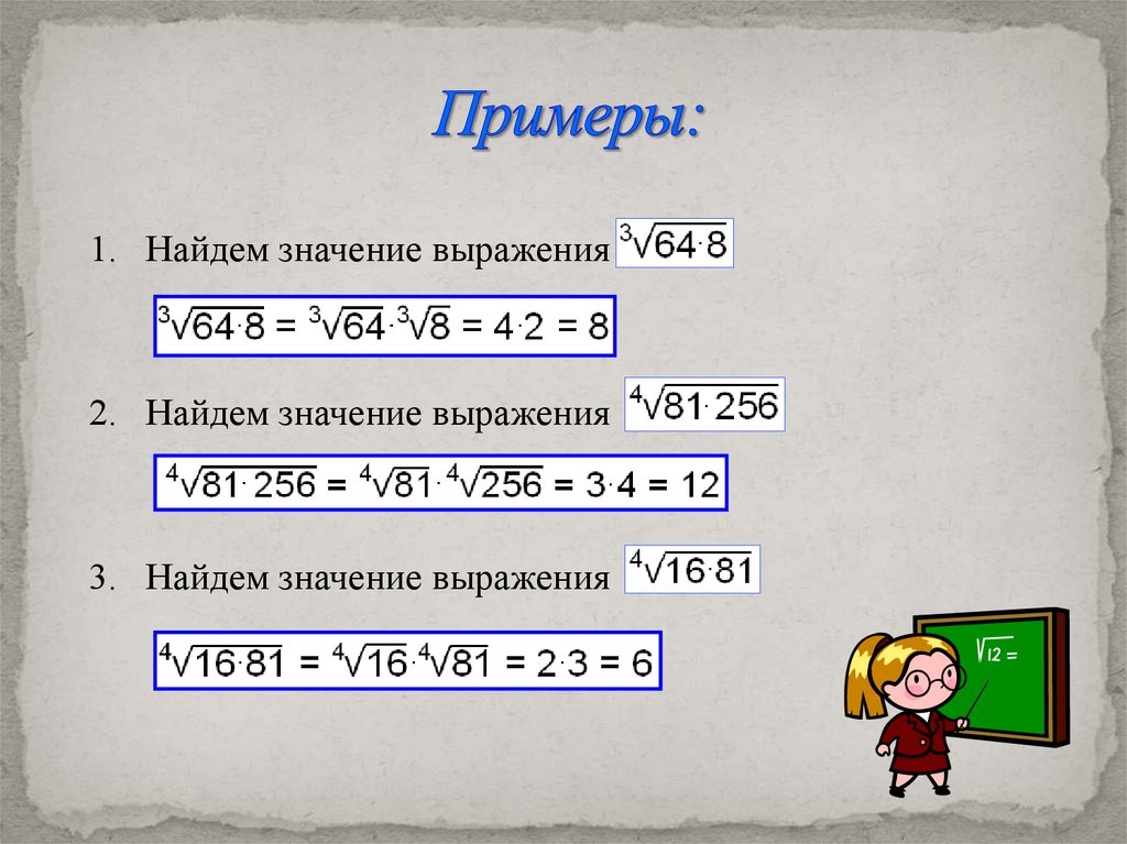 5. Корень из корня. Если а≥0, n ϵ N, k ϵ N n>1, k>1 то