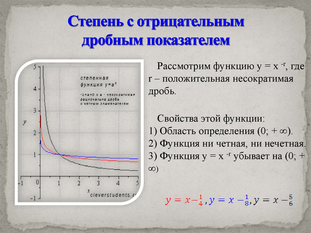Рассмотрим функцию у = х -r, гдеr – положительная несократимая