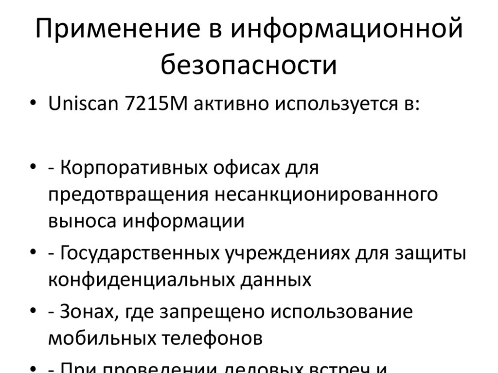 • Uniscan 7215M активно используется в: