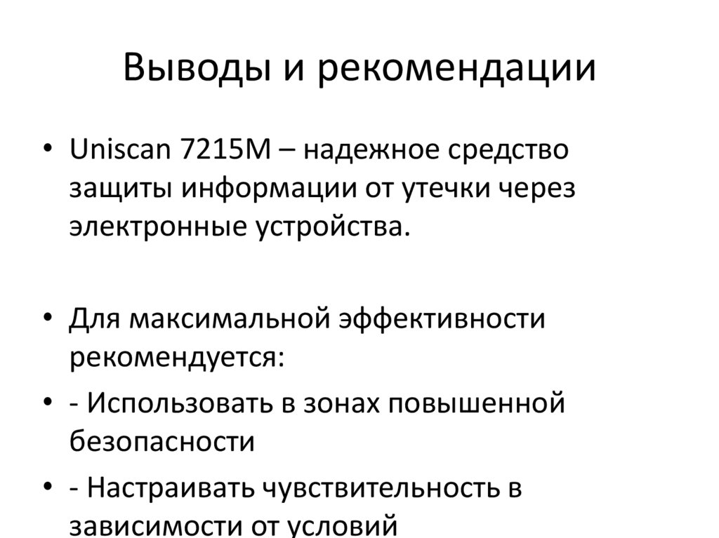 Выводы и рекомендации• Uniscan 7215M – надежное средство