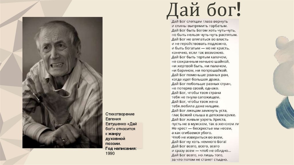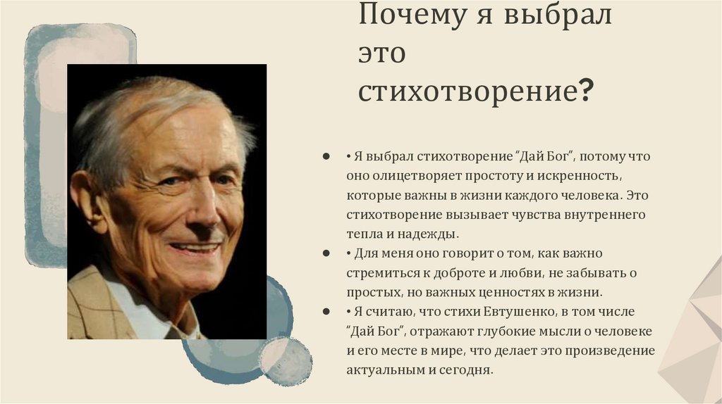 ● • Я выбрал стихотворение “Дай Бог”, потому что