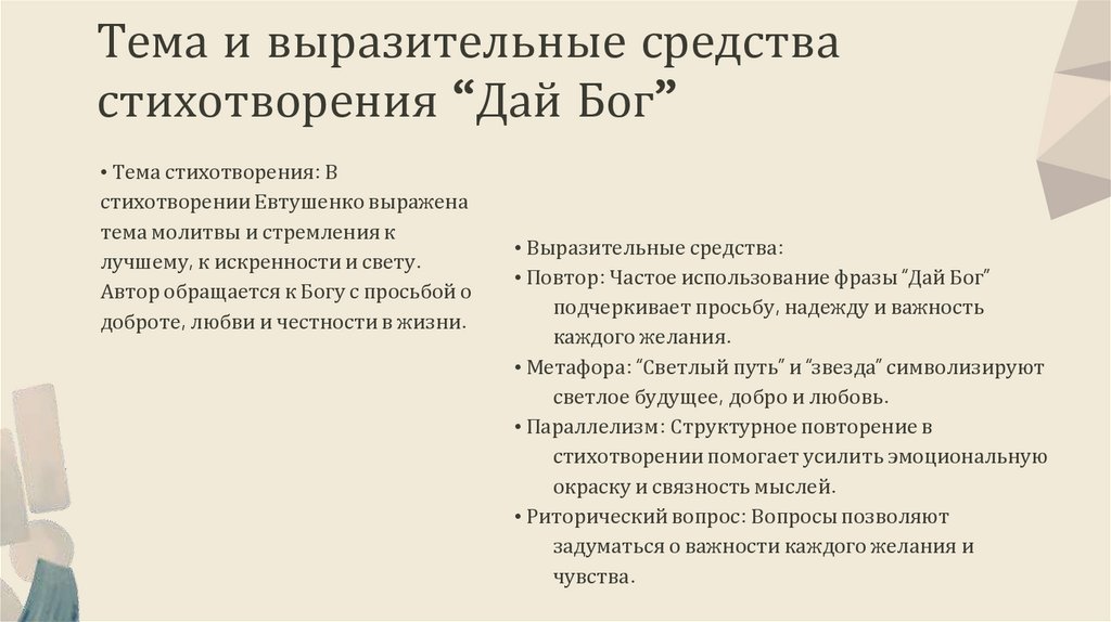 • Метафора: “Светлый путь” и “звезда” символизируют