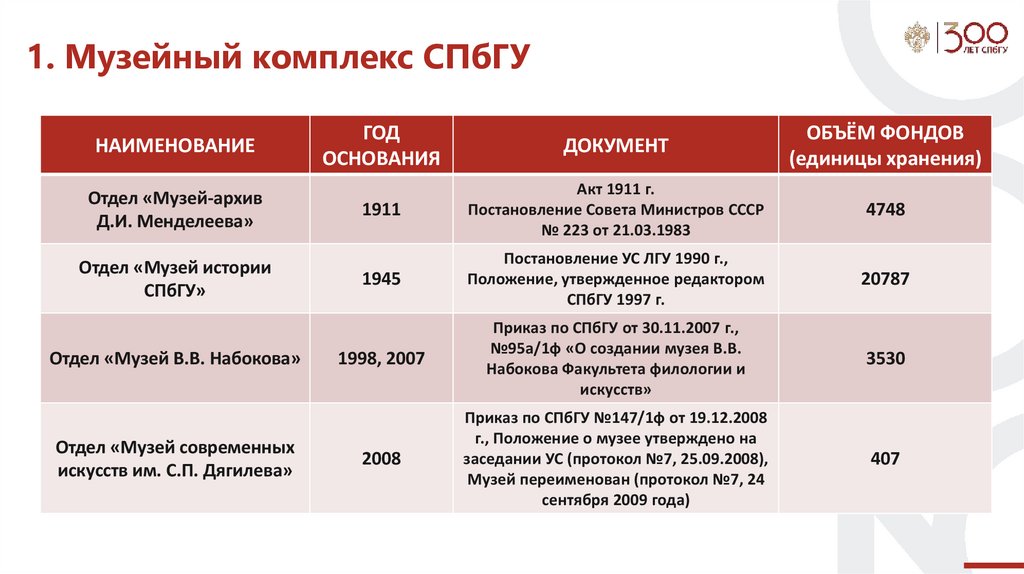 1. Музейный комплекс СПбГУНАИМЕНОВАНИЕ