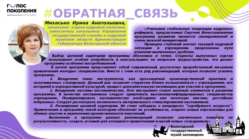 привлечения молодых специалистов. Вместе с этим есть ряд рекомендаций, которые позволят усилить