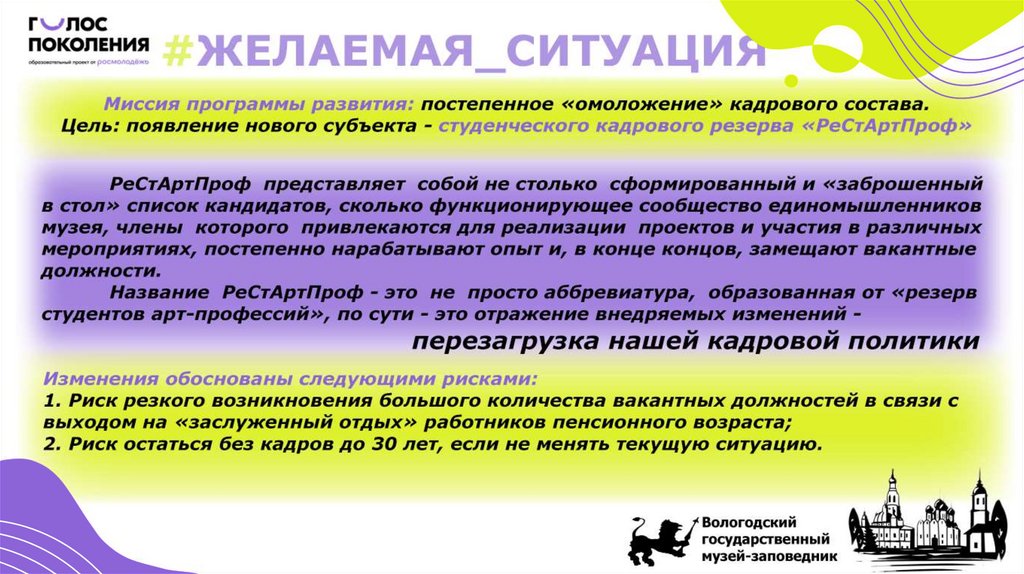 результативность, создать условия для успешного привлечения в музей новых сотрудников»