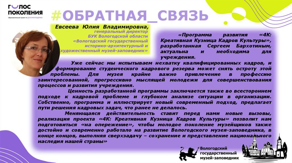 реализация проекта «4К: Креативная Кузница Кадров Культуры» позволит нам