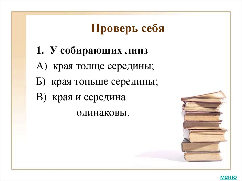 39. 2. Проходя через главный оптический центр линзы, лучи А) не преломляются; Б) преломляются; В) не отражаются.