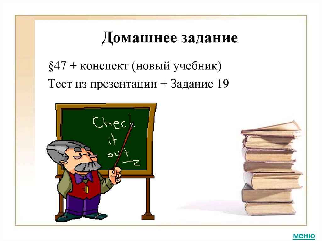 §47 + конспект (новый учебник)Тест из презентации + Задание 19