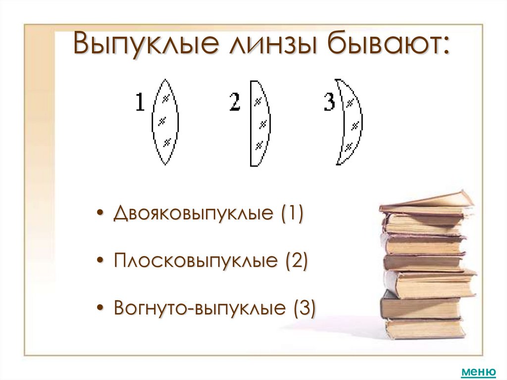 Выпуклые линзы бывают:• Двояковыпуклые (1)