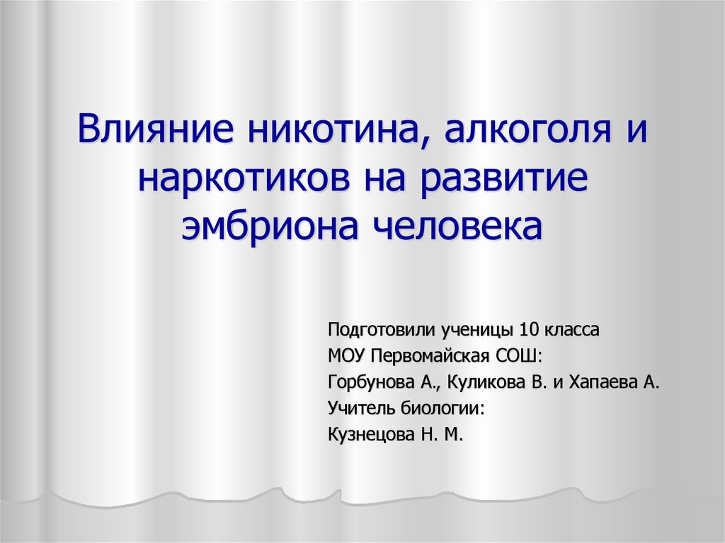 1. Влияние никотина, алкоголя и наркотиков на развитие эмбриона человека
