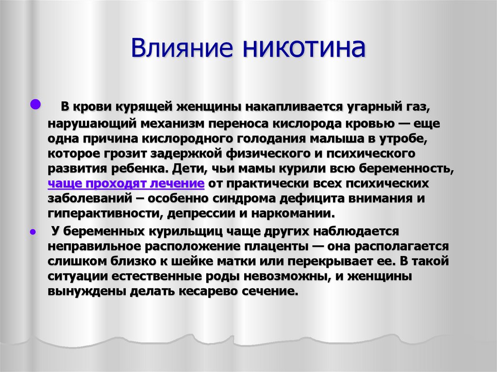 В крови курящей женщины накапливается угарный газ,нарушающий механизм переноса кислорода кровью — еще
