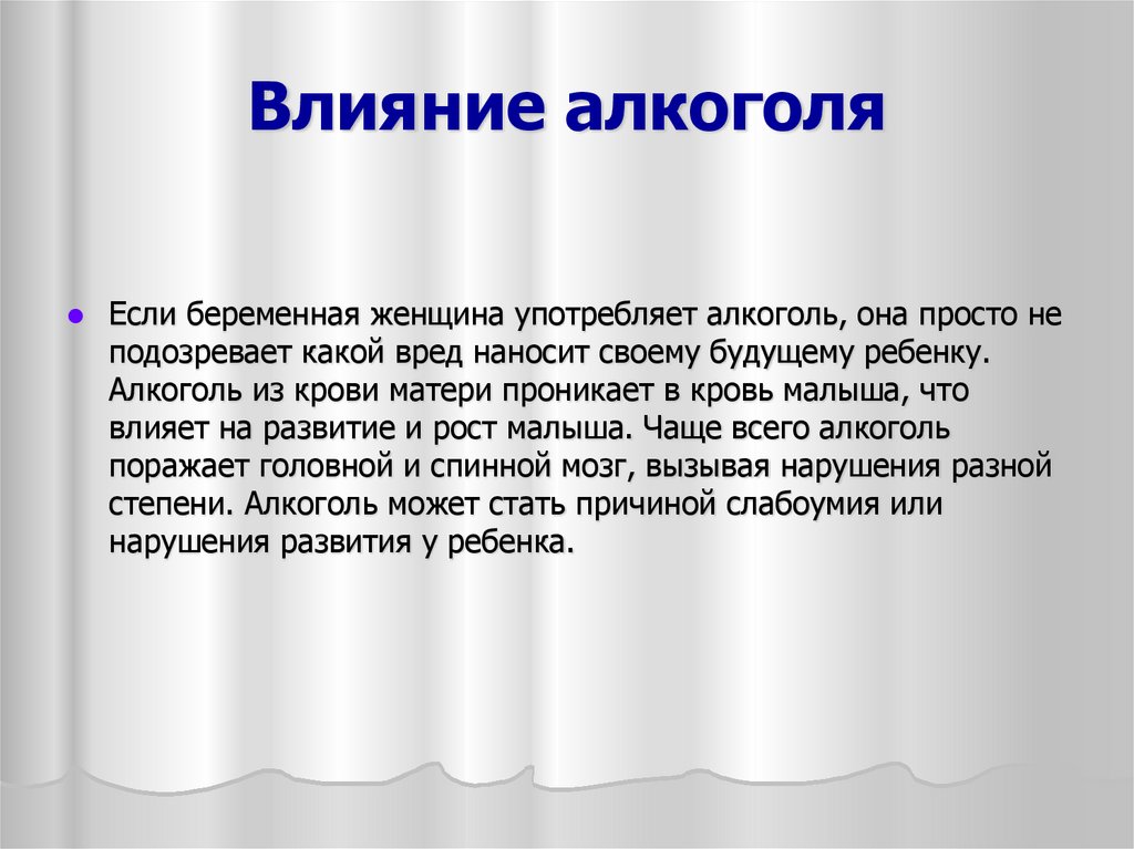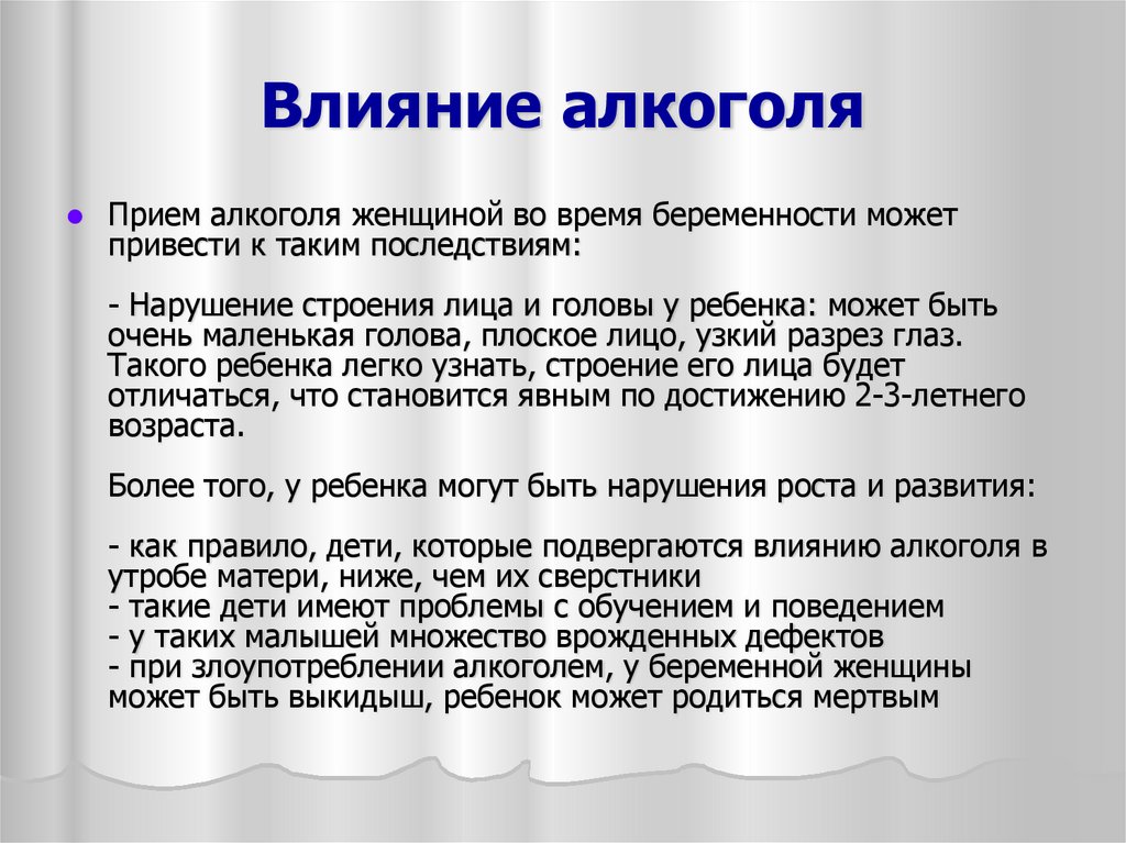 влияет на развитие и рост малыша. Чаще всего алкоголь