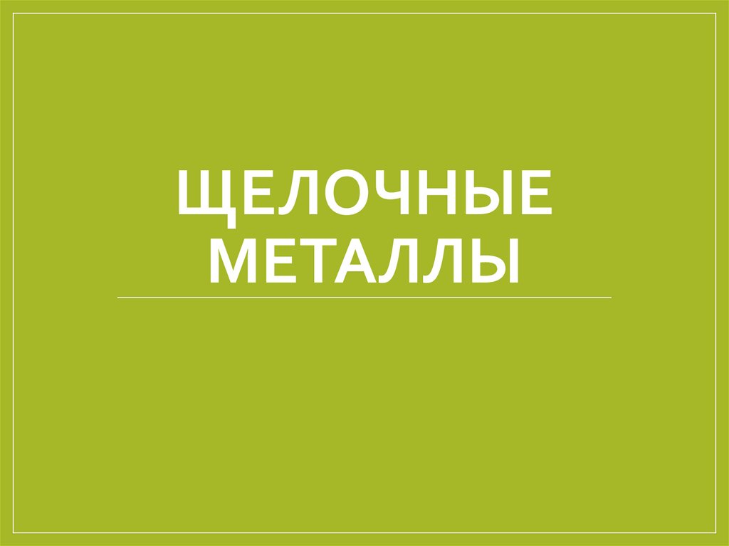 ЩЕЛОЧНЫЕМЕТАЛЛЫ