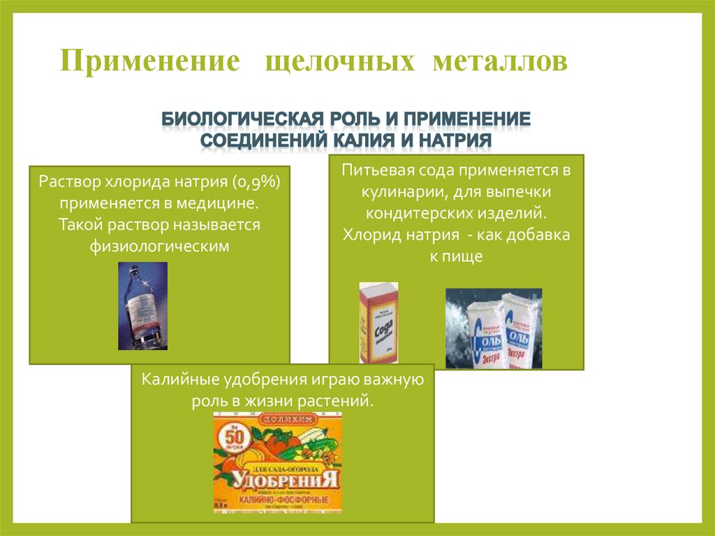 Применение щелочных металловРаствор хлорида натрия (0,9%)