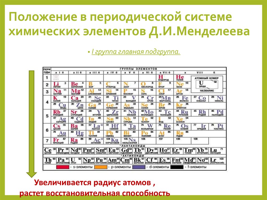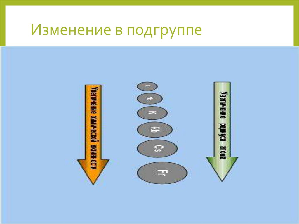 • I группа главная подгруппа.Увеличивается радиус атомов ,