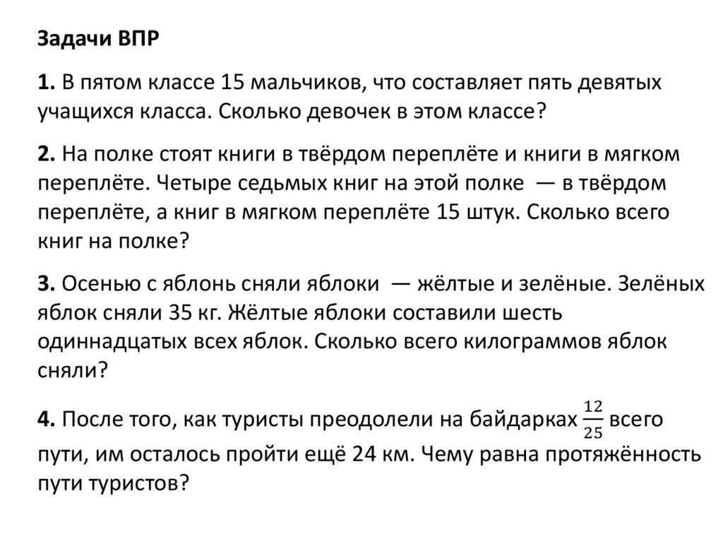 Задачи ВПР1. В пятом классе 15 мальчиков, что составляет пять девятых