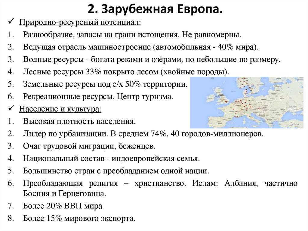 2. Зарубежная Европа.Природно-ресурсный потенциал: