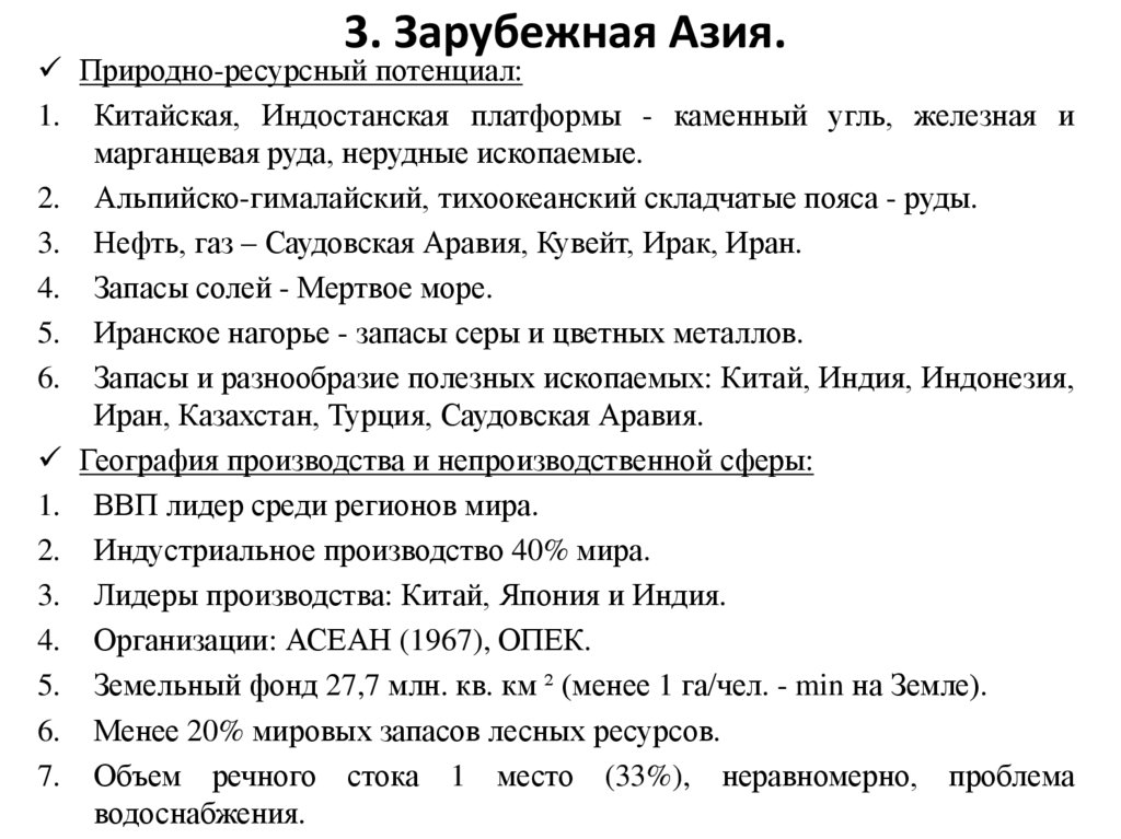 3. Зарубежная Азия.Природно-ресурсный потенциал: