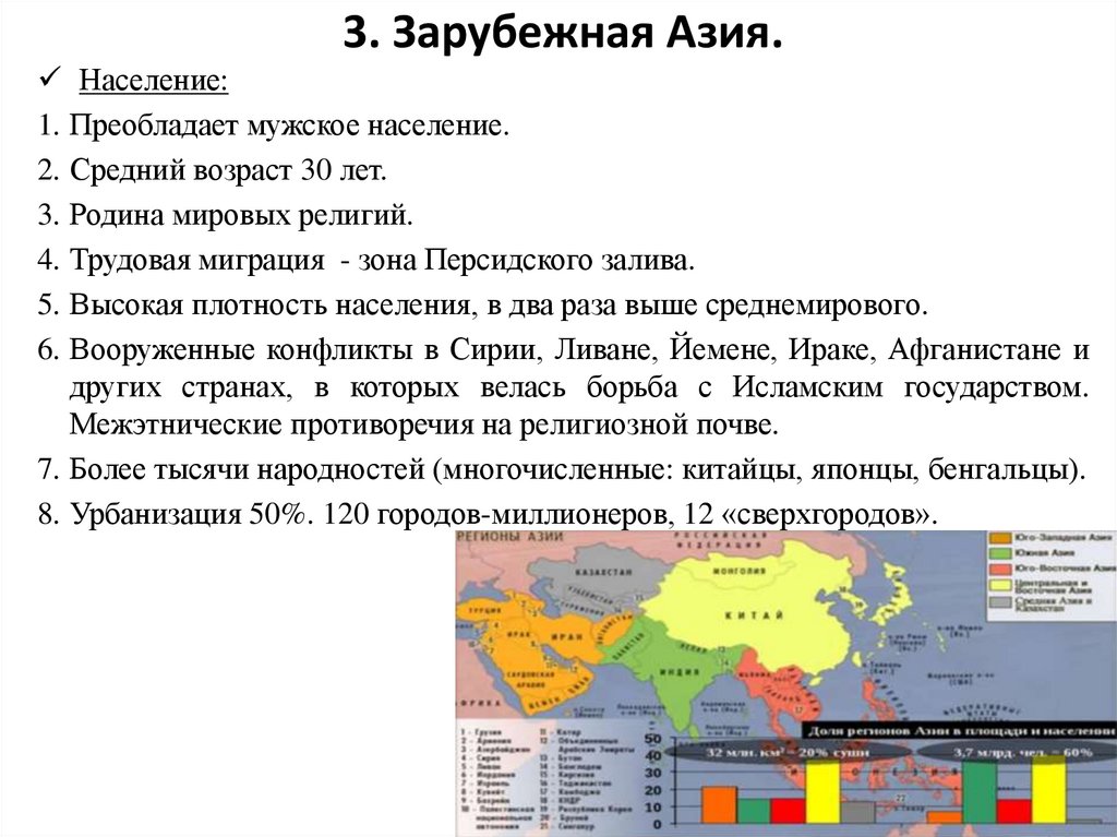 3. Зарубежная Азия.Восточная часть Евразии, S 32 млн. км2, 50 стран.