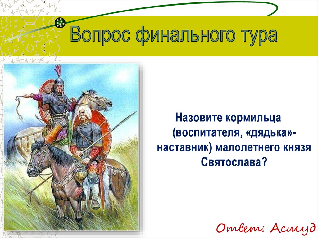 Назовите кормильца(воспитателя, «дядька»наставник) малолетнего князя