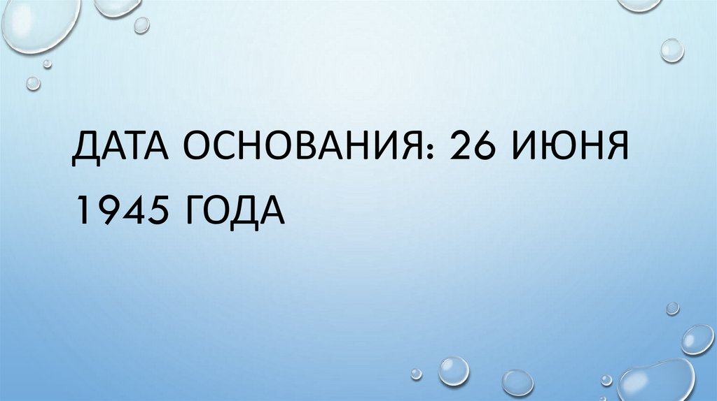 ДАТА ОСНОВАНИЯ: 26 ИЮНЯ1945 ГОДА