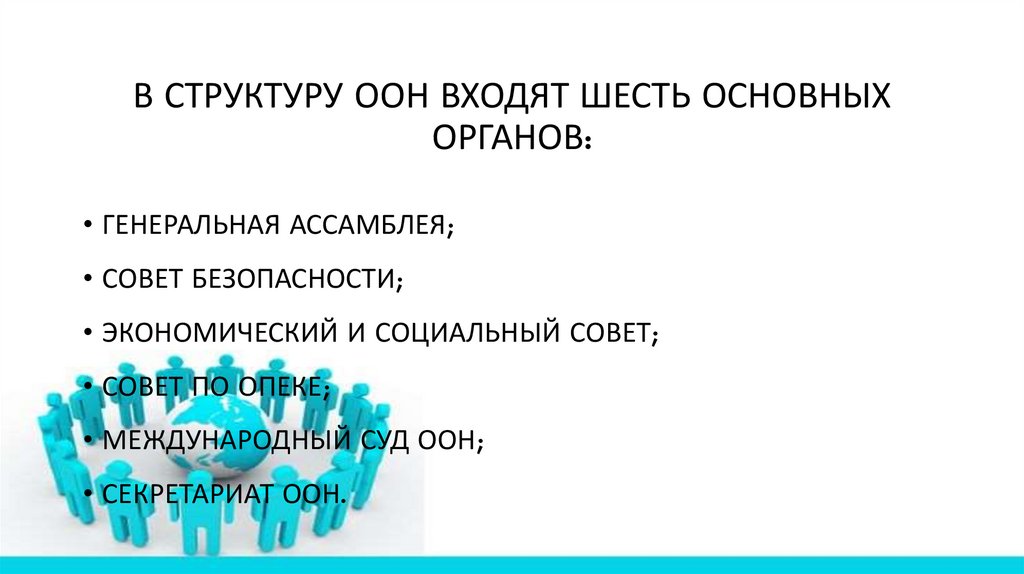 В СТРУКТУРУ ООН ВХОДЯТ ШЕСТЬ ОСНОВНЫХОРГАНОВ: